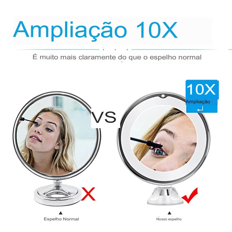 Descubra o detalhe perfeito com a função de ampliação 10X, que garante precisão em cada toque e acabamento em sua maquiagem ou cuidados diários com o rosto. Com dupla face, é ideal tanto para uma visão detalhada quanto para um reflexo comum.