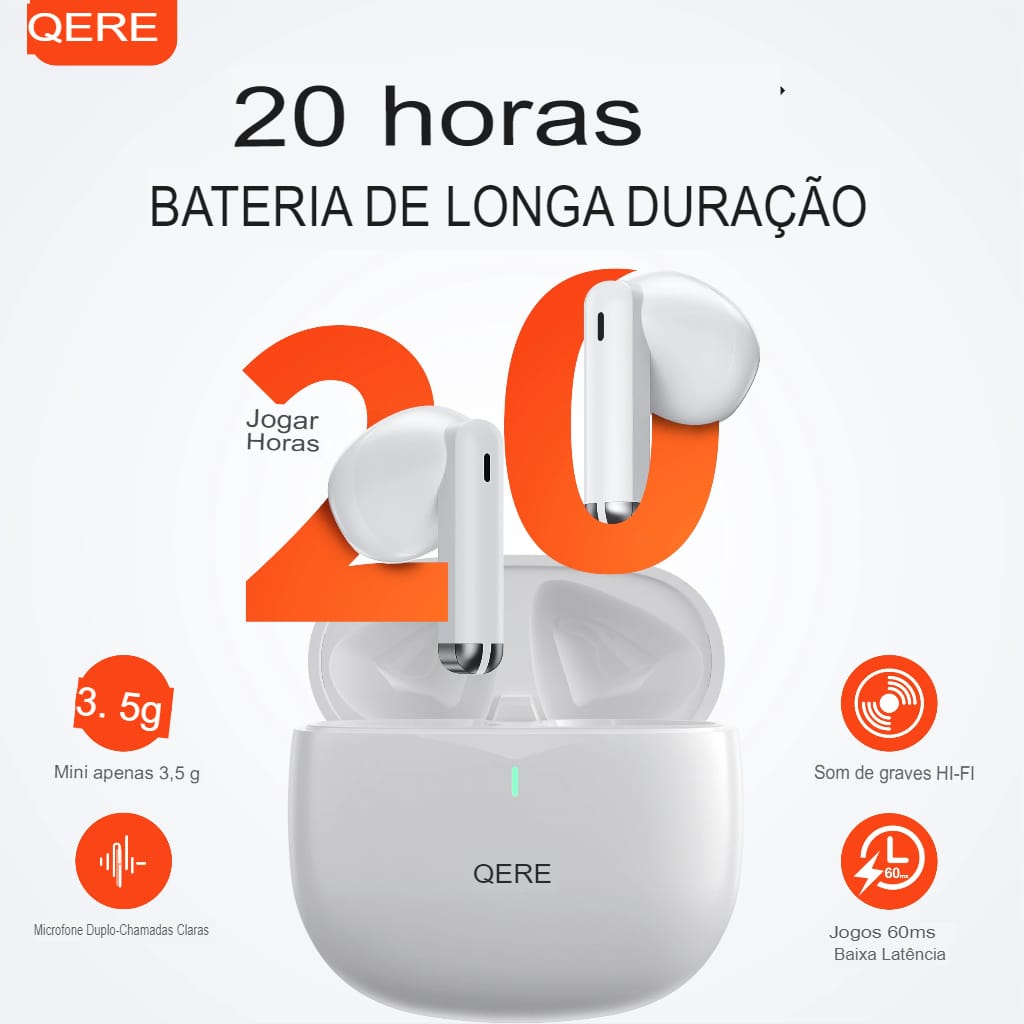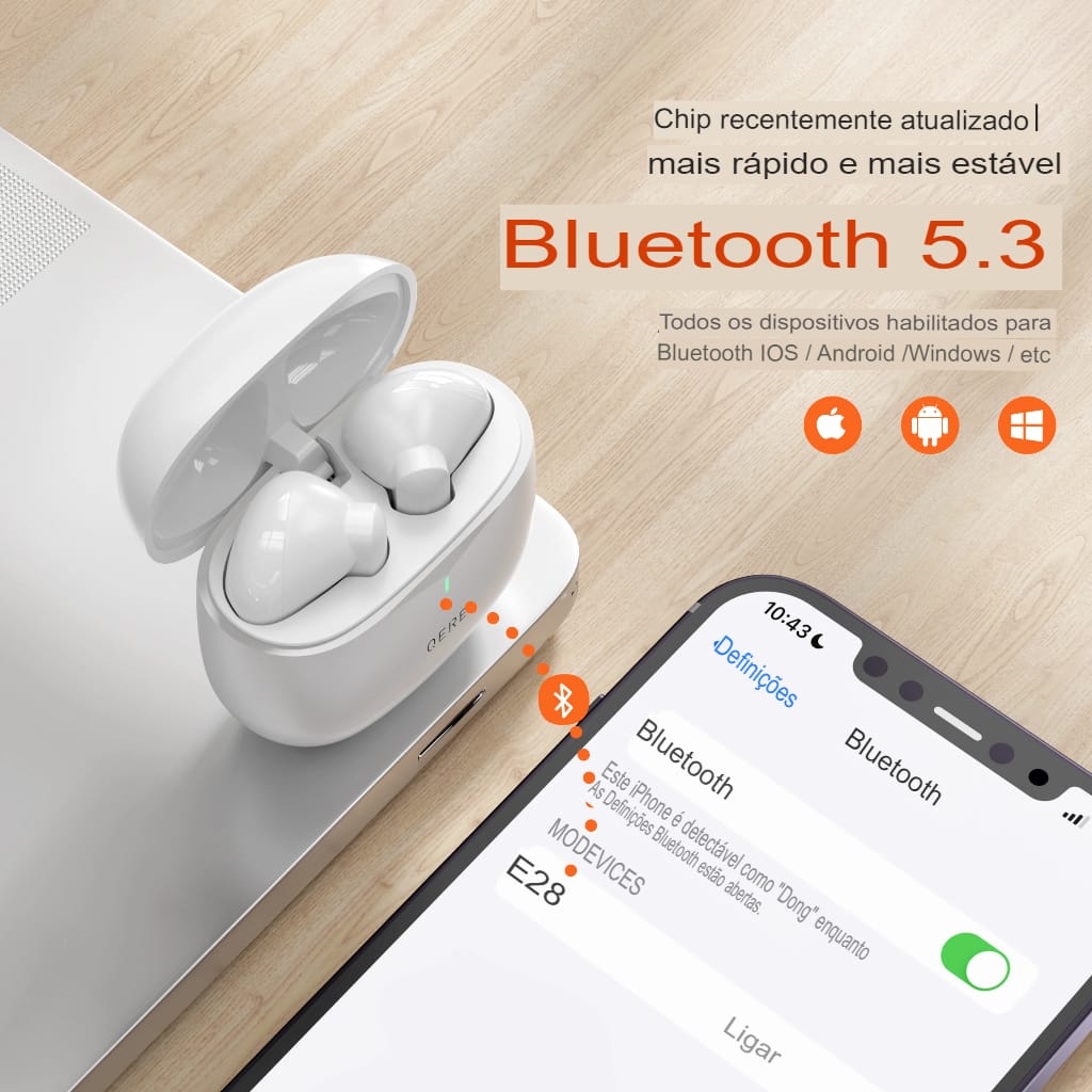 Fones Sem Fio QERE E28 Bluetooth 5.3 com Microfone HD e Baixa Latência