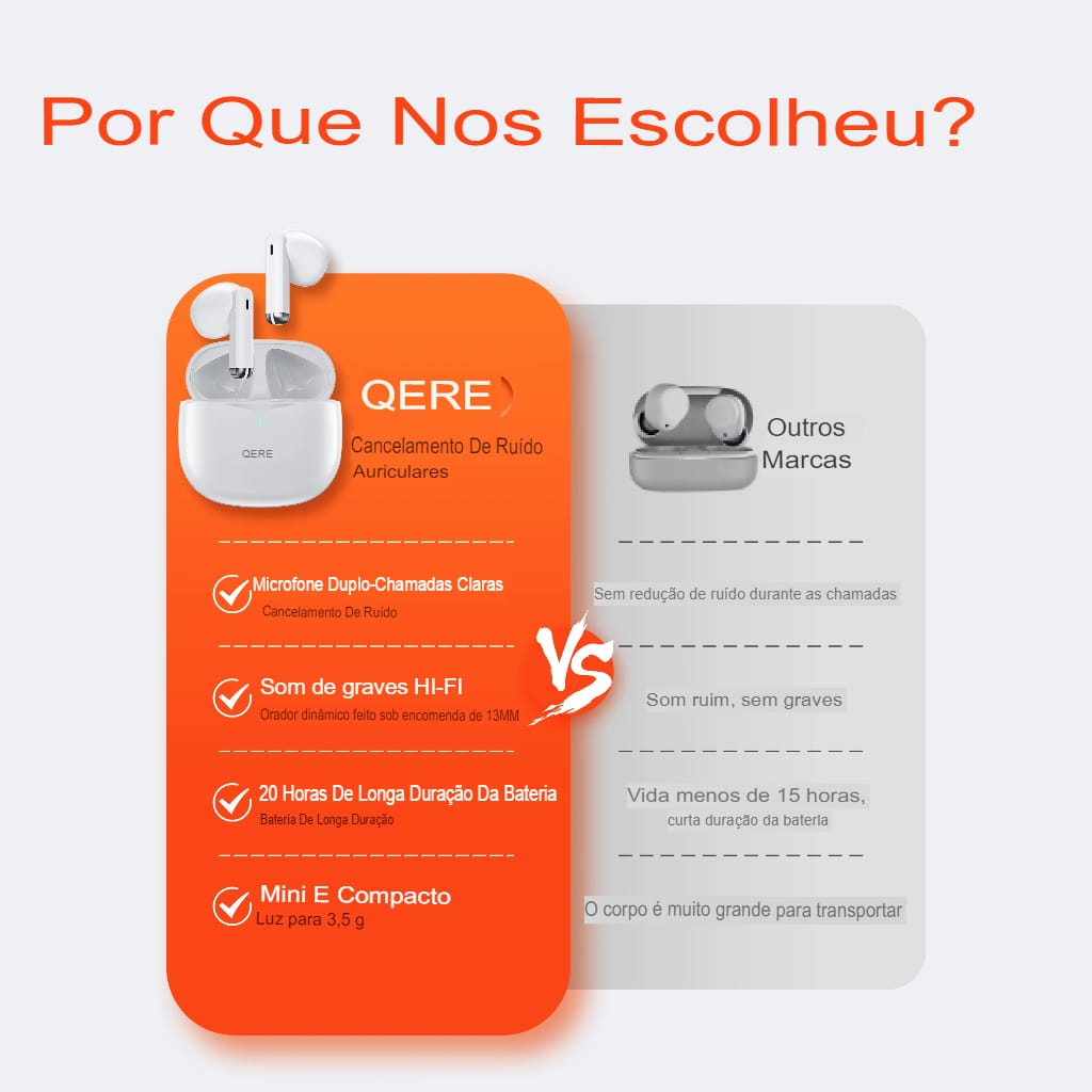 Fones Bluetooth QERE E28: som HiFi, cancelamento ativo de ruído, à prova d’água IPX-5 e microfone HD.