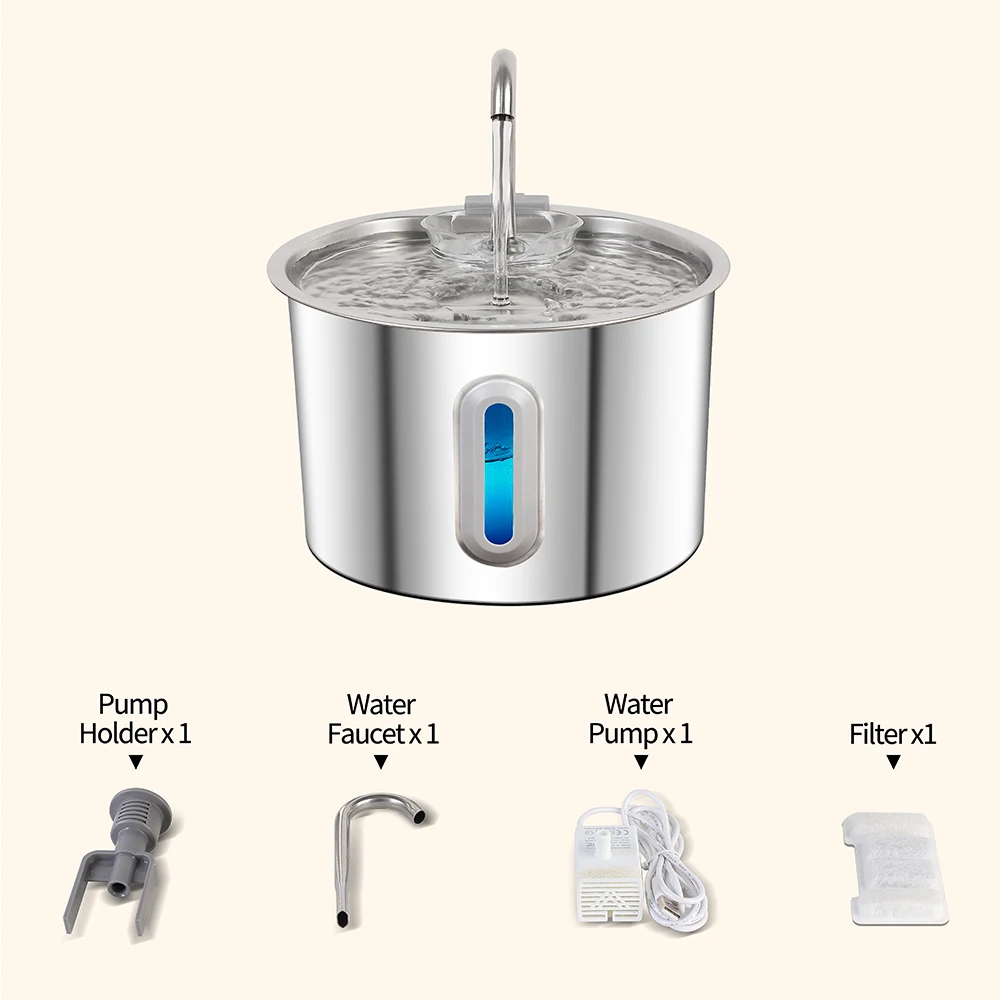 Fonte de Água Pet Inox 2.2L: Hidratação Silenciosa e Filtrada para Cães e Gatos