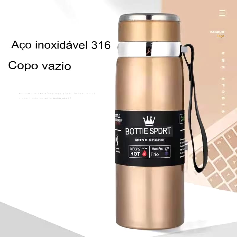 Fabricada em aço inoxidável 316, esta garrafa não só é duradoura como também resistente à ferrugem, garantindo anos de uso sem preocupações. Seu design elegante e funcional se encaixa facilmente em mochilas ou bolsas, sendo uma ótima companhia para trabalho, academia, acampamento ou viagens.