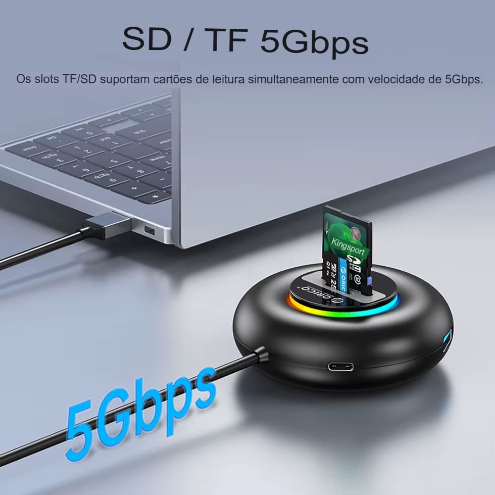 Hub Orico RGB Type C com Portas USB 3.0 e Leitor de Cartão SD