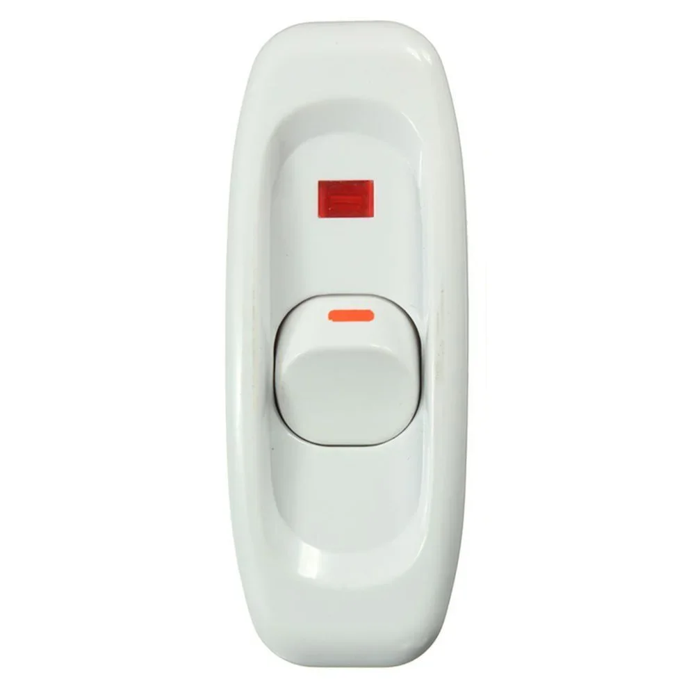 Interruptor de mesa prático com LED indicador. Compacto, seguro e disponível em preto ou branco.