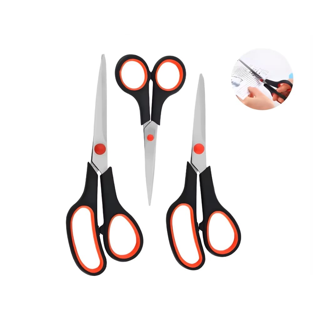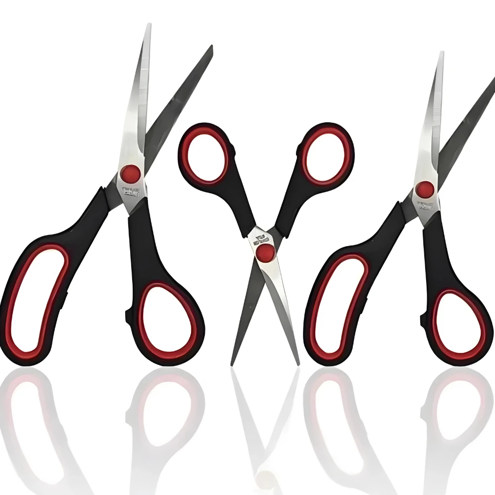 Kit 3 Tesouras Multiuso em Aço Inox: cortes precisos para cabelo, papel e artesanato. Com lâminas afiadas e design ergonômico, tenha a ferramenta certa para cada tarefa. Durabilidade e conforto garantidos para todas as suas necessidades diárias.