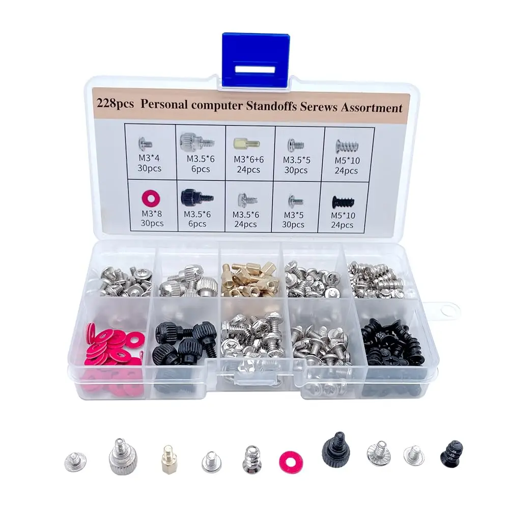 Kit completo com 228 parafusos essenciais para montagem e reparo de PCs. Inclui diversas medidas como M3, M4 e M5. Alta qualidade e durabilidade.