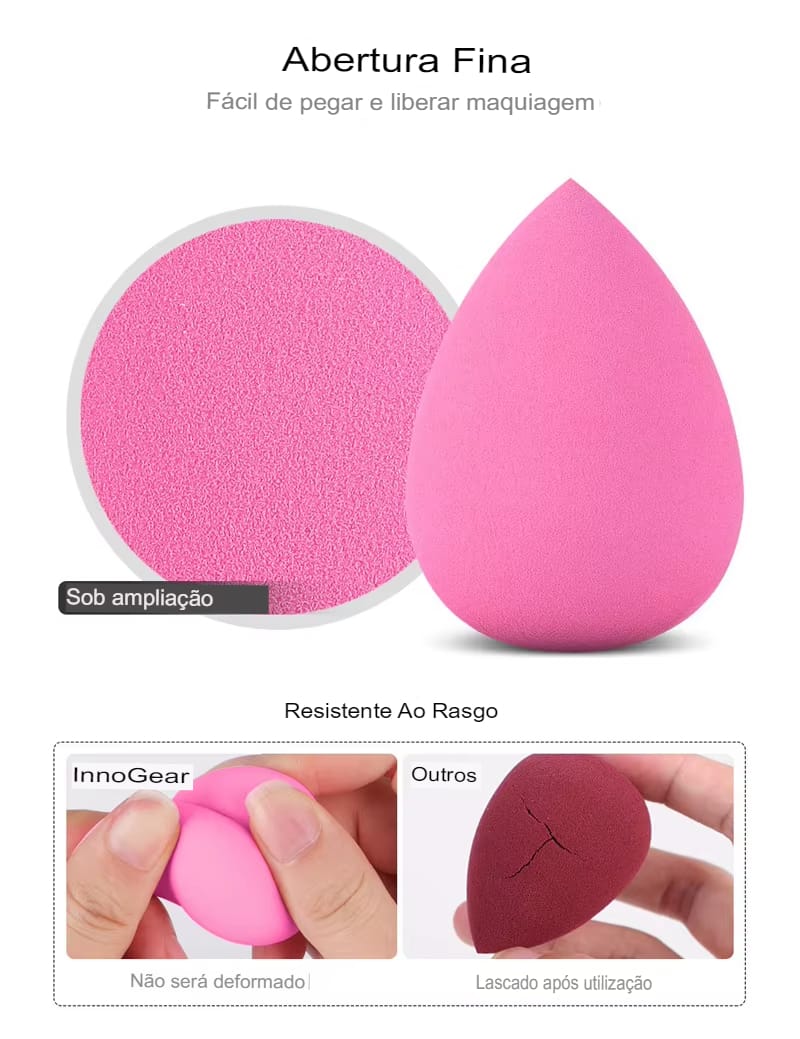 Feitas de material macio e resistente, essas esponjas duram por muito tempo sem perder sua qualidade. São hipoalergênicas e seguras para todos os tipos de pele. Simplifique sua vida diária de beleza com esse kit essencial que facilita a aplicação da maquiagem e melhora o resultado final!
