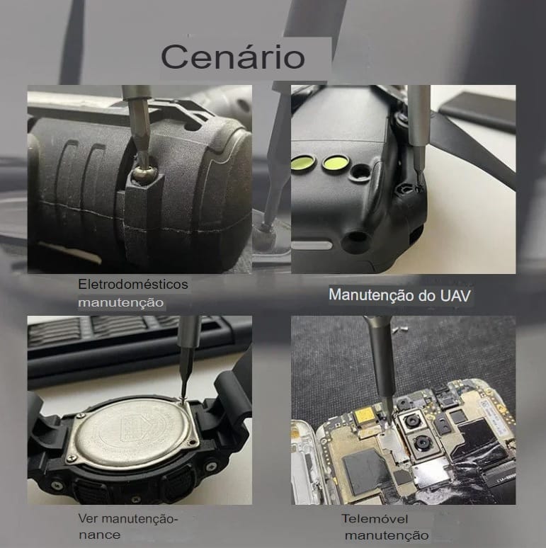 Seja desmontando um smartphone, ajustando os parafusos do seu relógio ou realizando manutenção no seu computador, este kit é o aliado ideal.