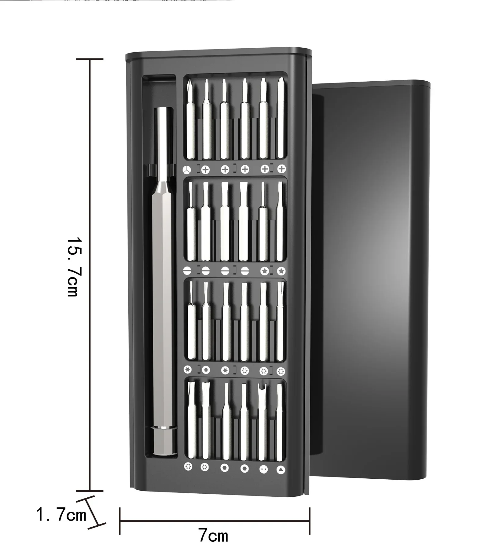 Kit 25 em 1: chaves magnéticas para manutenção prática e eficiente de smartphones, relógios e computadores.