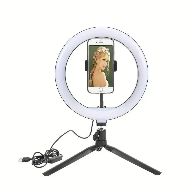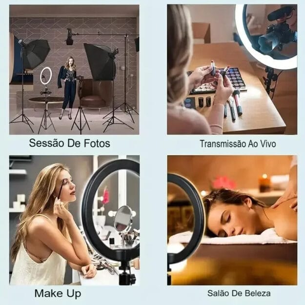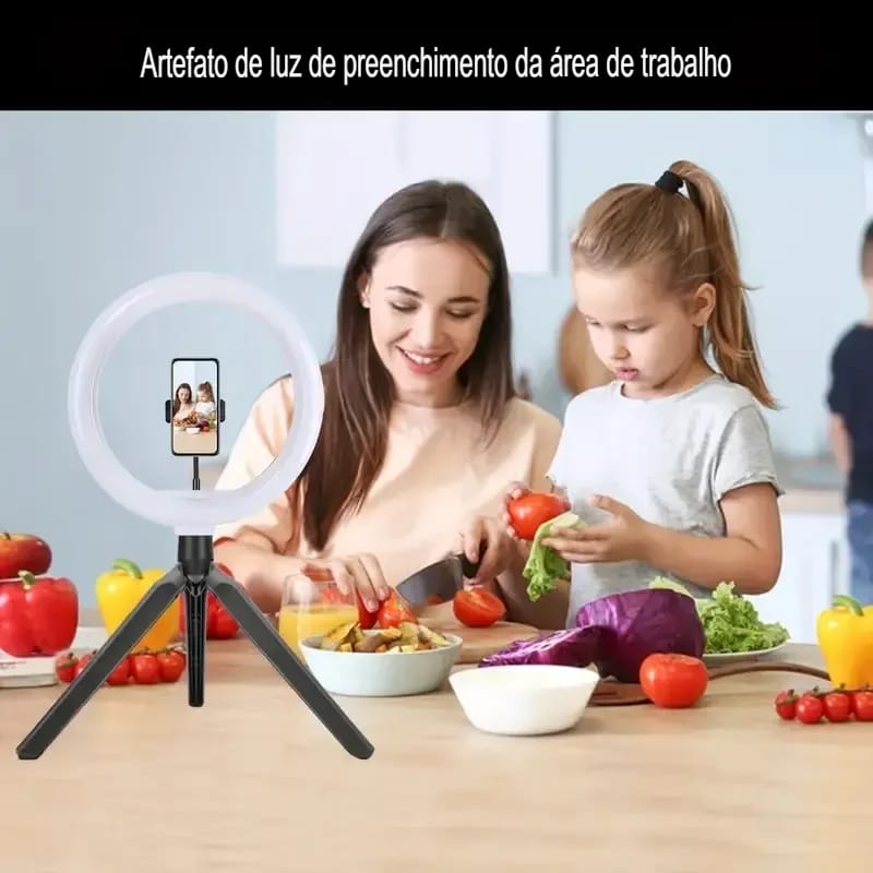 Transforme suas fotos e vídeos com esta incrível Luz de Anel LED de 26cm. Perfeita para streamers, criadores de conteúdo e apaixonados por fotografia, ela traz uma iluminação uniforme e profissional para capturar momentos especiais de forma impecável.