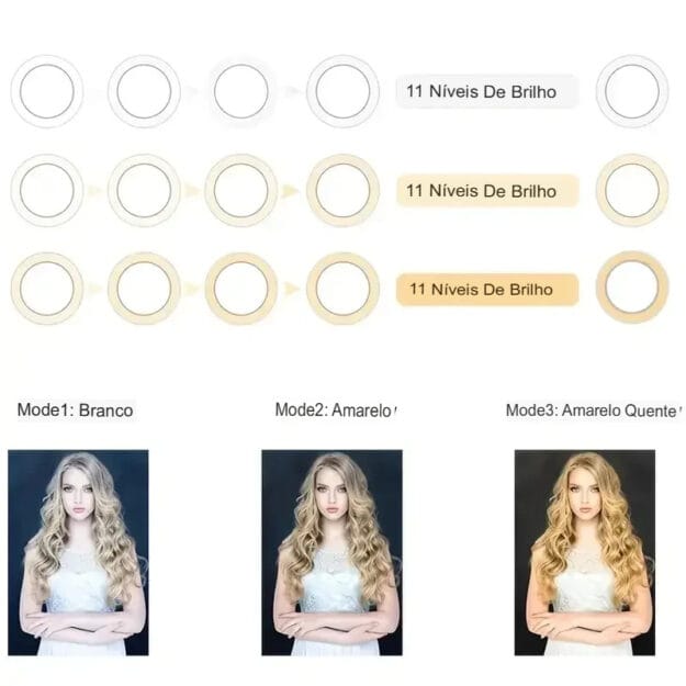 A luz possui uma função regulável, permitindo o ajuste da intensidade conforme a necessidade. Essa flexibilidade garante que a iluminação seja sempre adequada, seja em um ambiente brilhante ou mais escuro. Facilite suas sessões de maquiagem ou grave vídeos incríveis com um *setup* simples e eficiente.