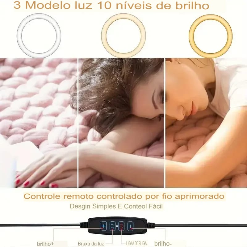 Luz LED Anel 26cm Regulável com Tripé para Vídeo e Maquiagem