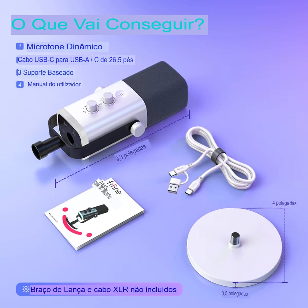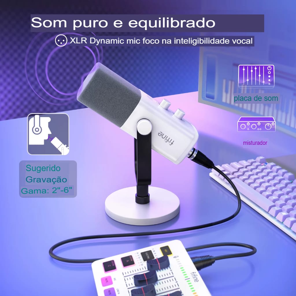 Descubra o Microfone Dinâmico FIFINE AM8W, perfeito para gravações e streaming de jogos. Com design moderno e funcionalidades avançadas, ele é ideal para elevar sua experiência de áudio.