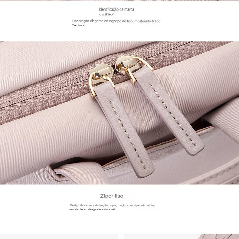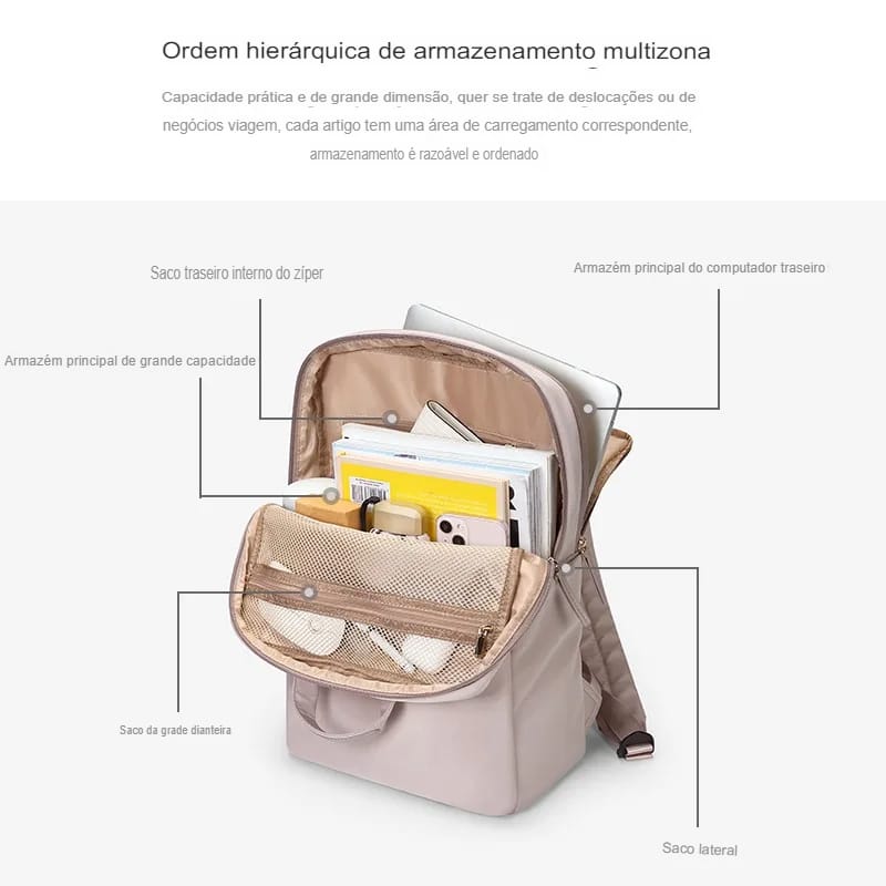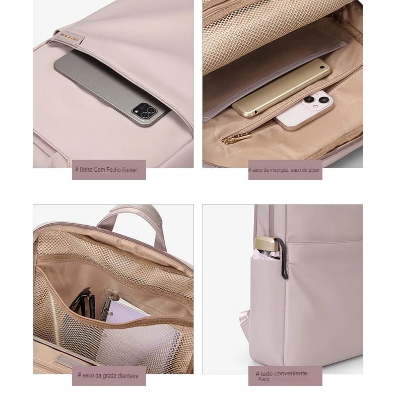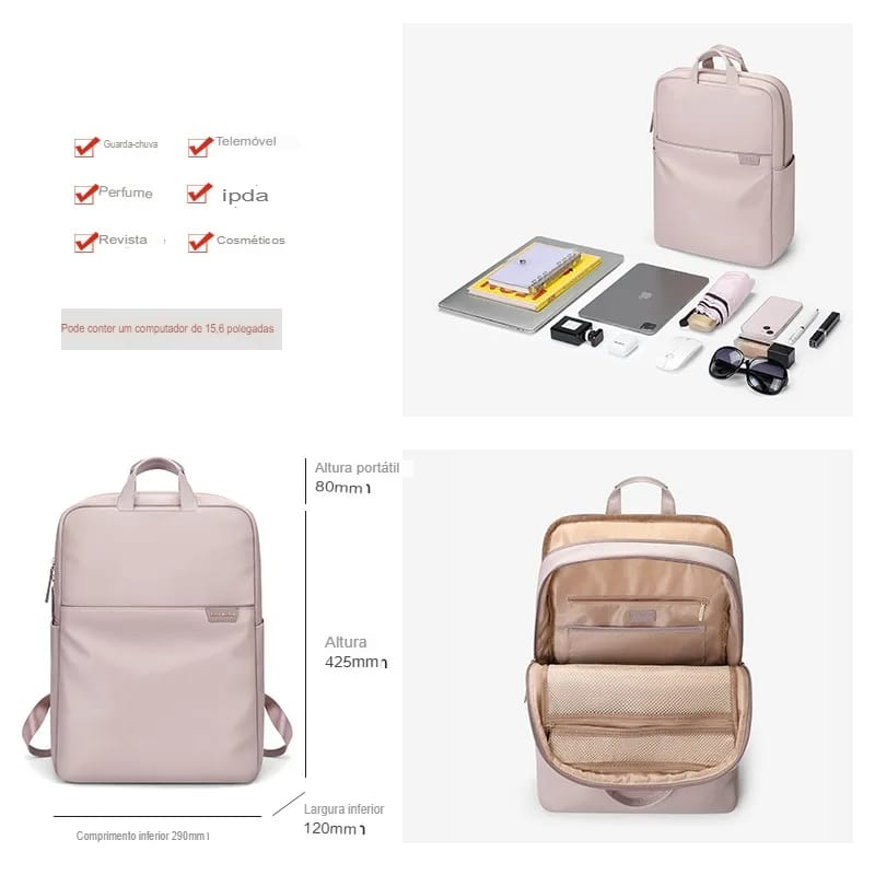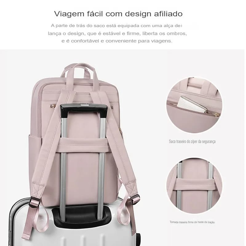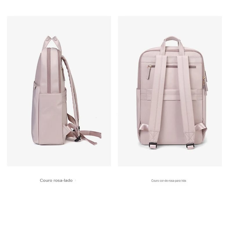 Mochila Feminina Nylon Rosa Slim à Prova d’Água com Compartimento para Notebook