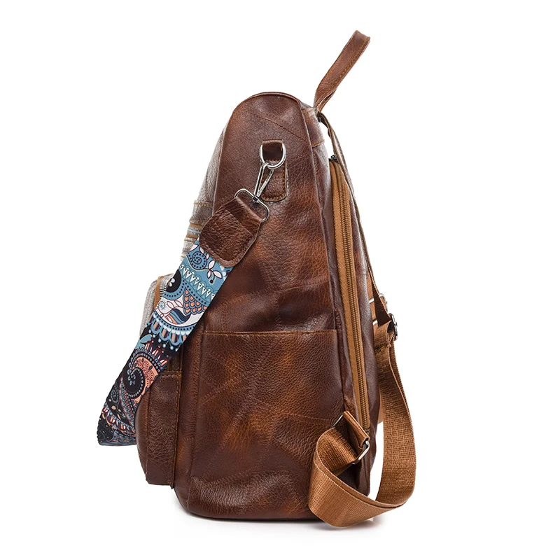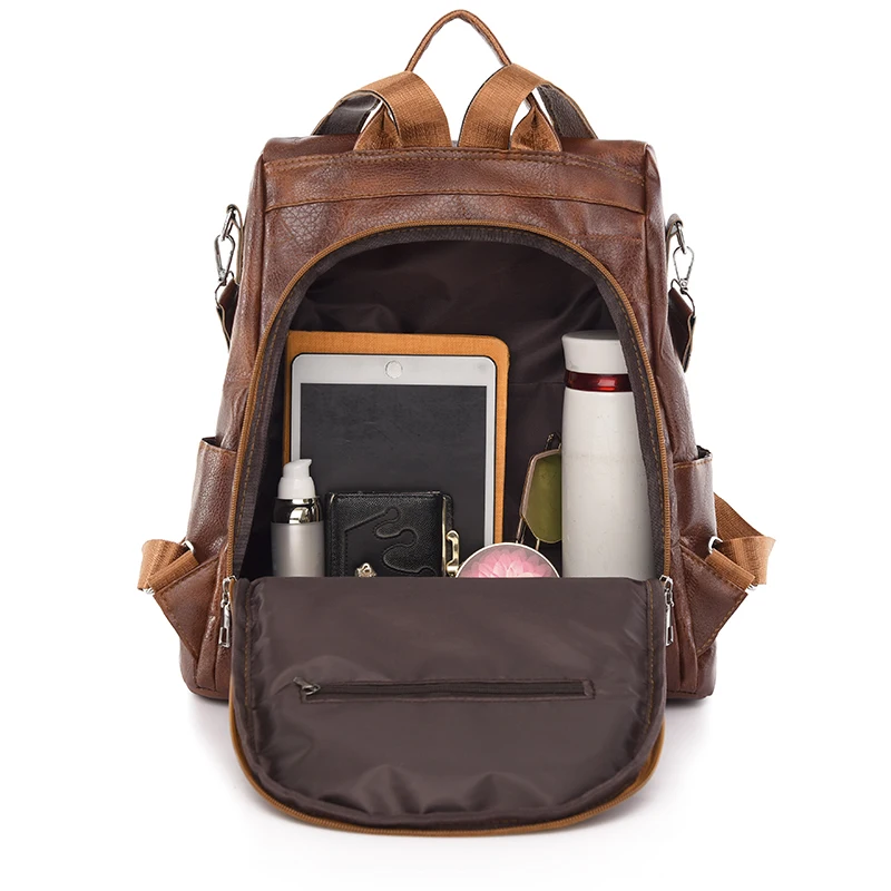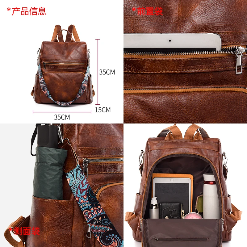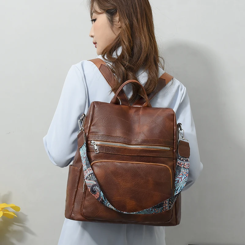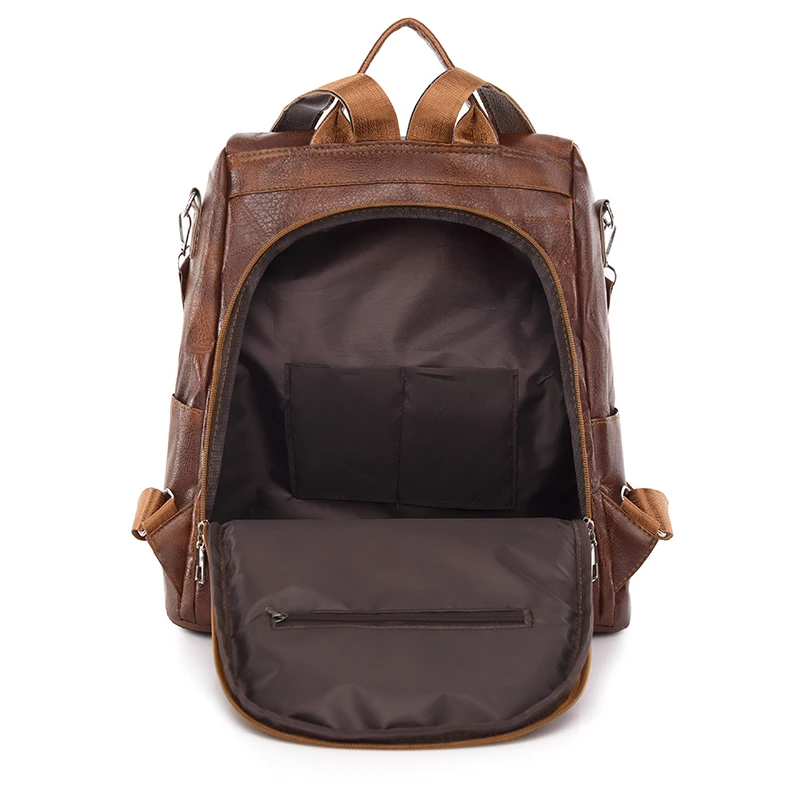 Mochila feminina vintage em couro macio, versátil para uso diário ou viagens. Design clássico e multifuncional.