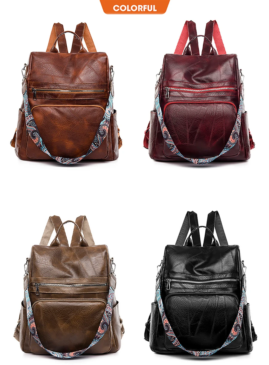 Mochila Feminina Vintage 3 em 1 de Couro Macio para Viagem
