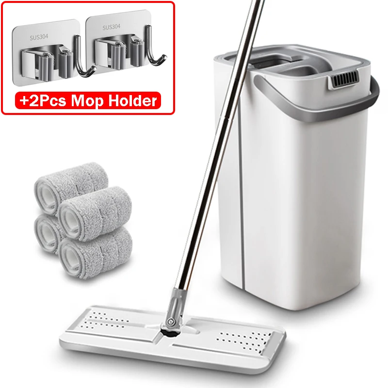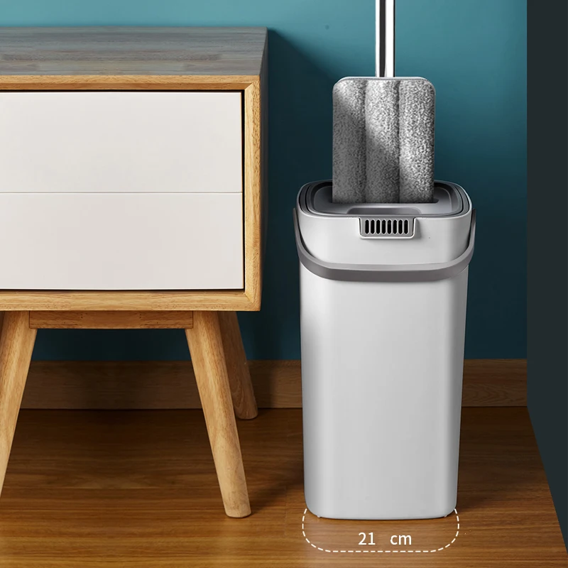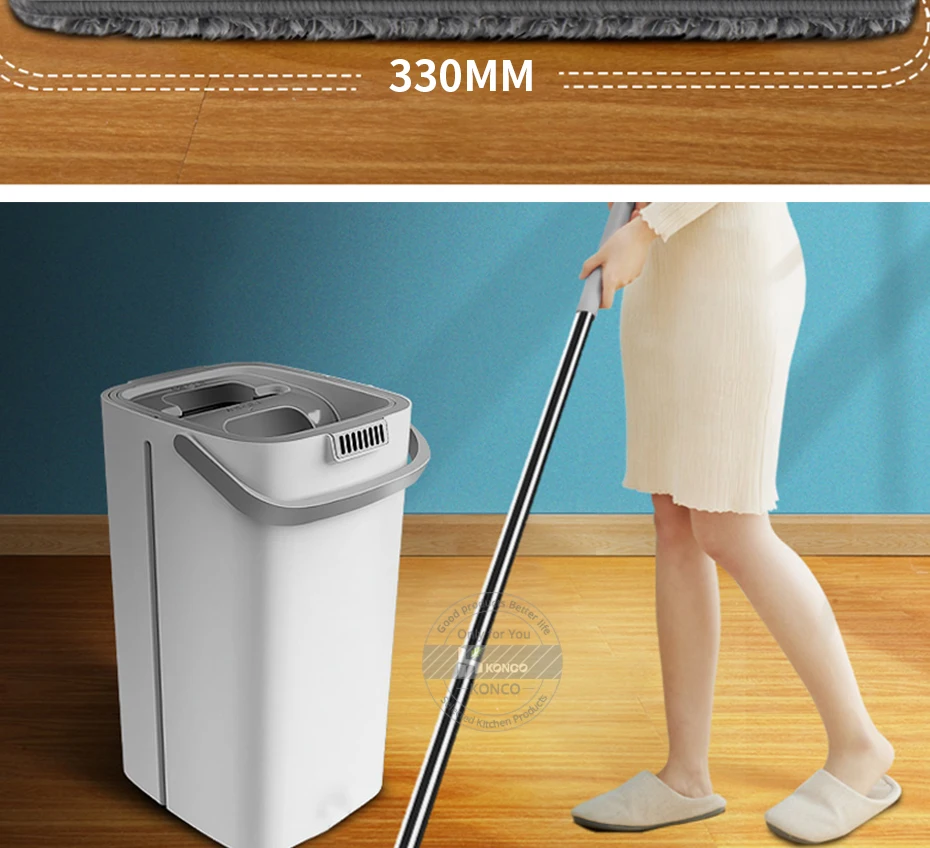 O mop possui uma cabeça de microfibra que é extremamente eficiente na absorção de líquidos e sujeira, sem deixar pelos ou arranhões. Seu mecanismo rotatório de 360 graus permite uma movimentação suave e precisa, indo onde outros produtos não alcançam. Acompanha um balde especial que espreme o mop automaticamente; basta inserir e retirar algumas vezes para torcer a água.
