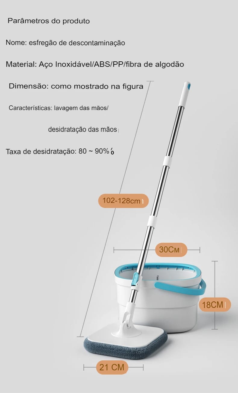 Facilite a rotina de limpeza da sua casa com o incrível Mop Giratório 360° com Sistema de Centrifugação. Este produto revolucionário oferece uma maneira prática e eficiente de manter seus pisos impecáveis, economizando tempo e esforço.