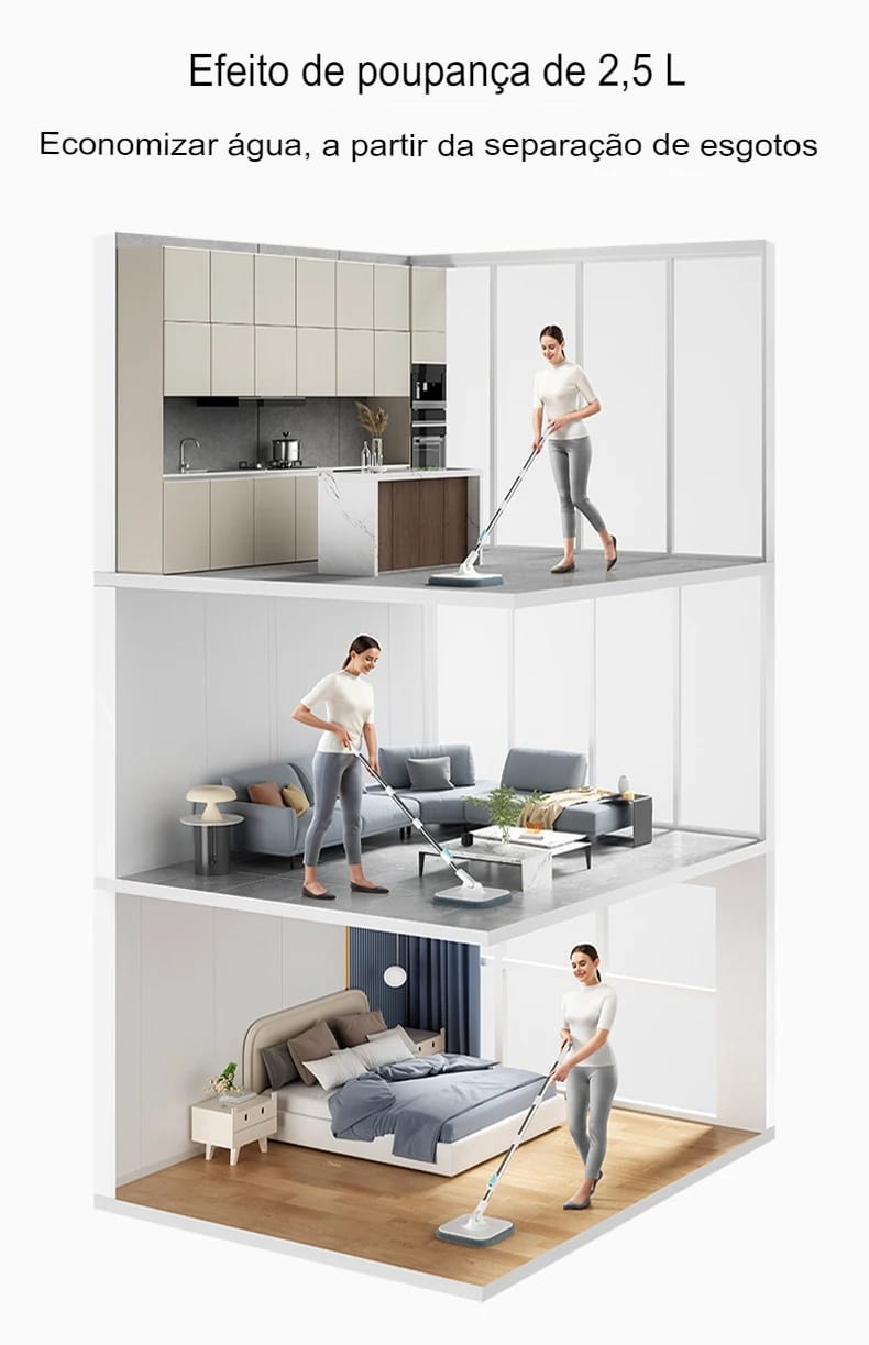Facilite sua rotina com o Mop Giratório 360°. Limpeza eficiente sem sujar as mãos!