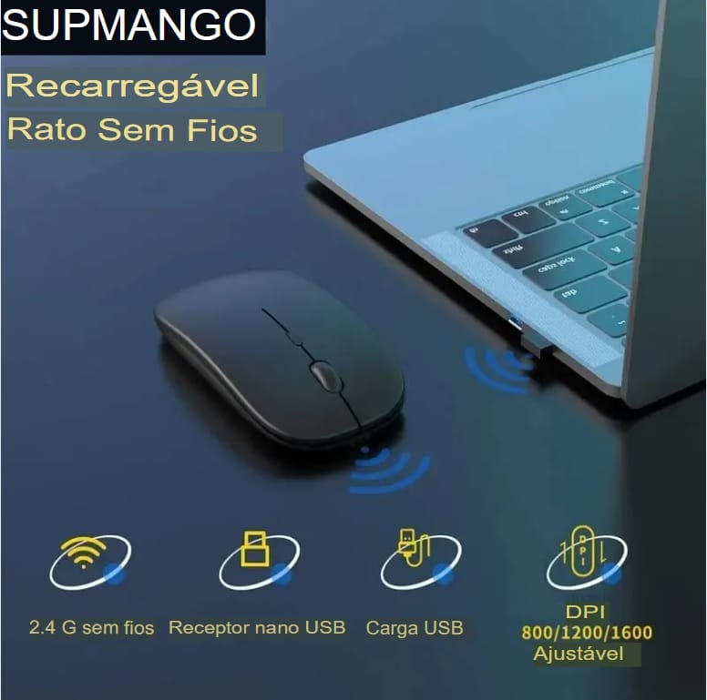 Desfrute dos jogos com o Mouse Gamer Sem Fio SUPMANGO: ergonômico, silencioso e compatível com vários dispositivos.