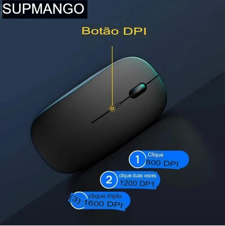Com o botão de ajuste de DPI, você pode personalizar a sensibilidade do mouse conforme suas necessidades, seja para aumentar a precisão ou a agilidade nos movimentos. E o melhor: ele é compatível com uma variedade de dispositivos como notebooks, tablets e até iPads, proporcionando versatilidade máxima no seu uso diário.