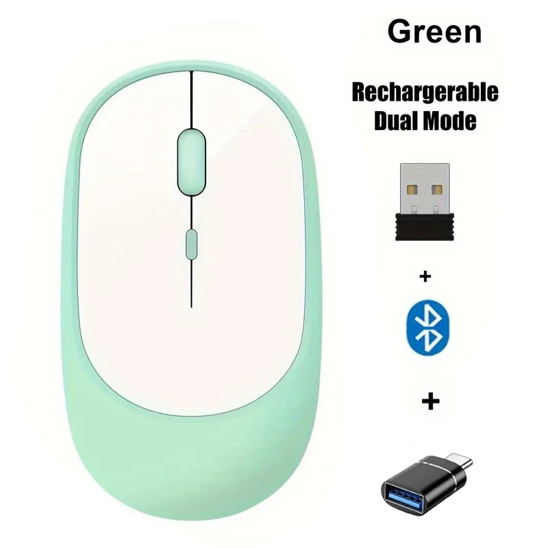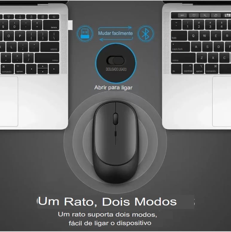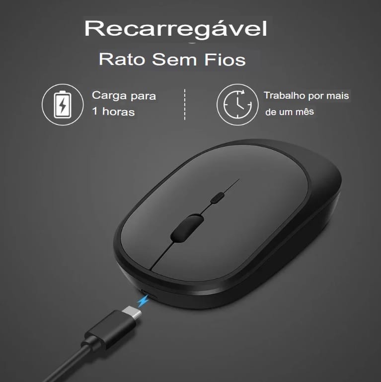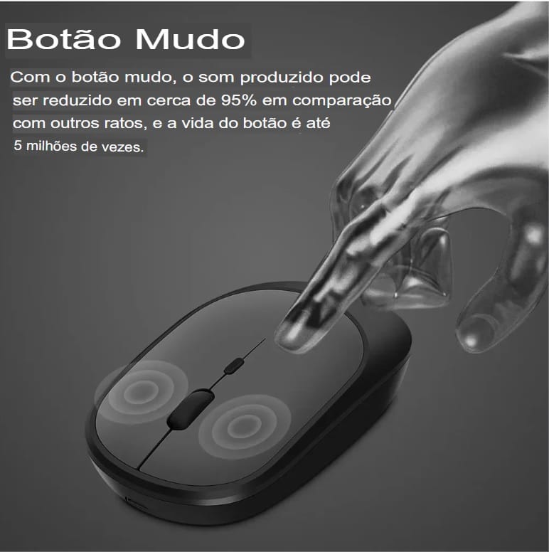 Mouse Wireless Recarregável com Bluetooth e USB Silencioso