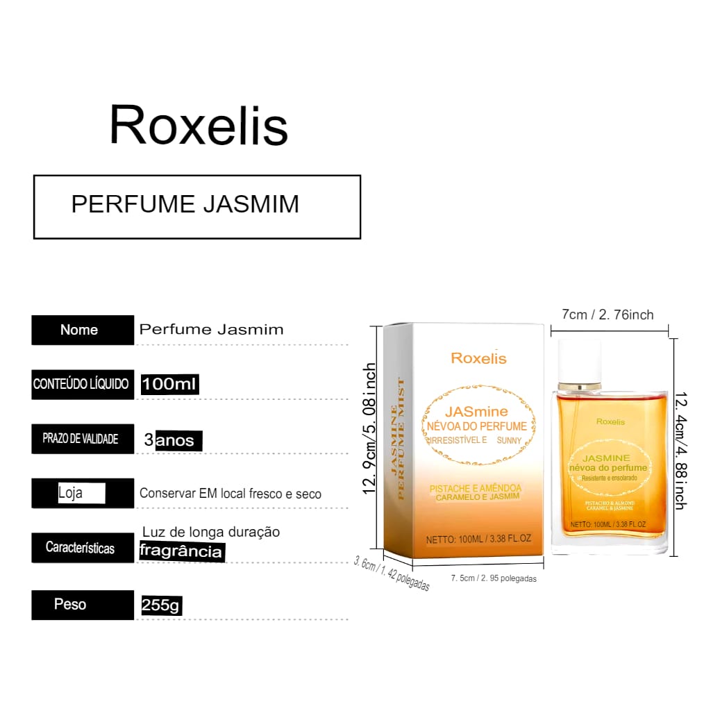 Perfume Natural de Jasmim Roxelis 100ml – Refrescante e Duradouro