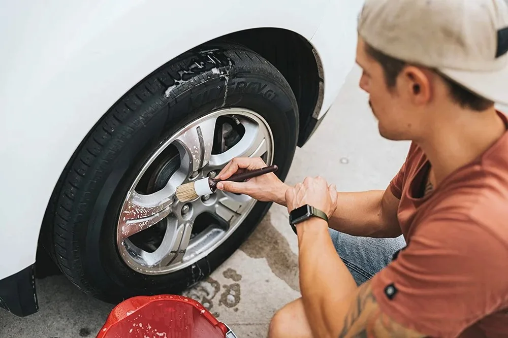 Pincel Detalhador com Cerdas de Javali para Limpeza de Carros