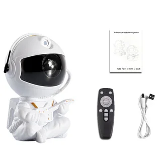 Com um design único de astronauta sentado na lua, este projetor não é apenas funcional, mas também decorativo. Ele pode ser colocado em qualquer lugar que você desejar, adicionando um toque especial ao seu quarto, sala de estar ou escritório. As nebulosas coloridas são reguláveis e você pode controlar facilmente a cor das projeções com o controle remoto incluído.