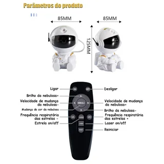 Transforme qualquer ambiente em um espetáculo celeste com o Projetor de Galáxia Astronauta 3.0. Este incrível projetor traz a magia do cosmos diretamente para a sua casa, criando uma atmosfera relaxante e encantadora que é perfeita para crianças e adultos.