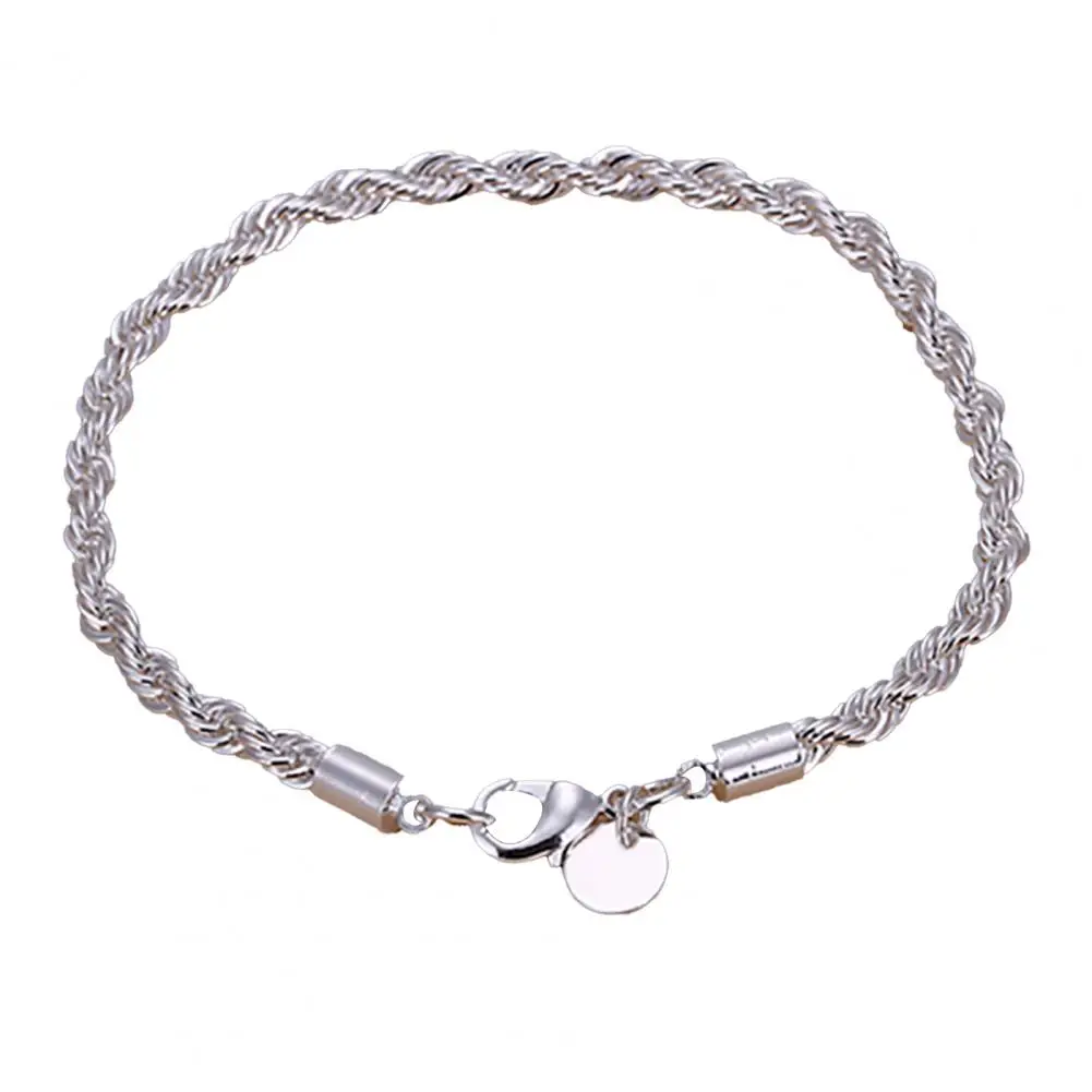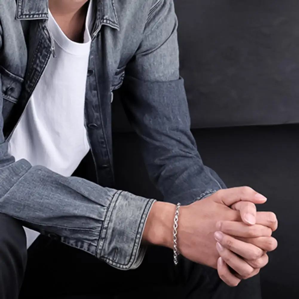 Pulseira de Prata Torcida Estilo Único para Mulheres e Homens