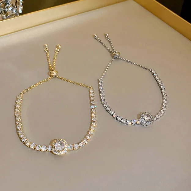 Pulseira Feminina Ajustável com Zircônias Brilhantes: Elegância Banhada a Ouro ou Prata