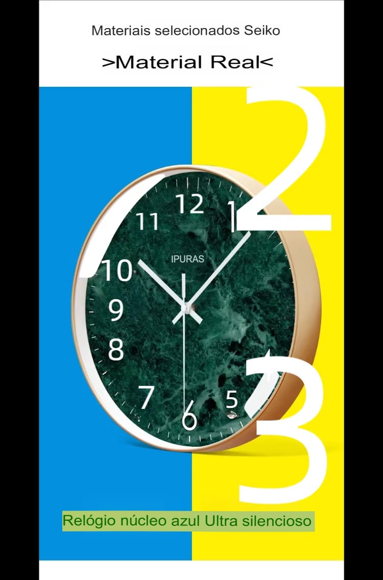 Perfeito para a sala, quarto, cozinha ou até em escritórios e cafés, seu visual moderno se destaca sem roubar a cena. Suas cores sólidas combinadas com números brancos conferem um ar de simplicidade refinada, tornando-se uma peça multifacetada que complementa qualquer decoração.