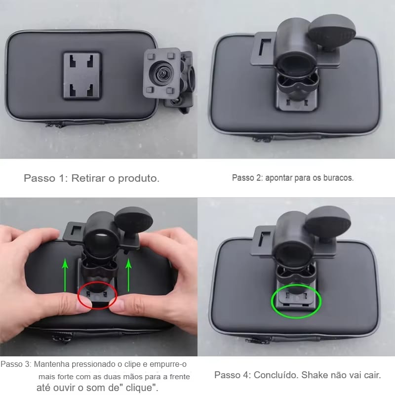 Compatível com uma ampla variedade de smartphones, incluindo iPhones e Samsungs, nosso suporte conta com um sistema de fácil instalação. Basta encaixá-lo no guidão da sua bicicleta ou moto, ajustar firmemente até ouvir o clique, e pronto! Seu celular estará seguro enquanto você navega por mapas GPS ou acessa apps durante o passeio.