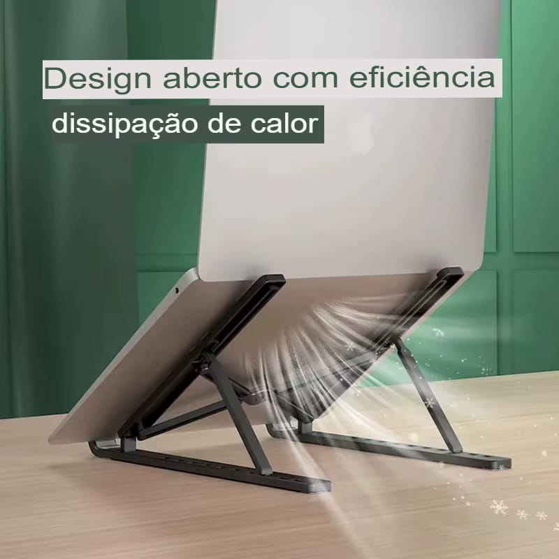 Compacto e incrivelmente fácil de dobrar, o Suporte para Notebook é seu companheiro ideal para qualquer lugar. Leve-o na mochila, na bolsa ou guarde-o em qualquer gaveta sem ocupar espaço. Sua versatilidade o torna indispensável para estudantes, profissionais em home office ou viajantes que não abrem mão de uma estação de trabalho confortável e eficiente.