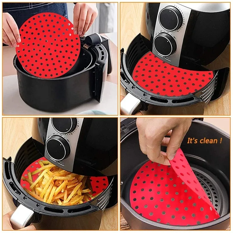 Tapetes de Silicone Reutilizáveis para Air Fryer em Diferentes Formatos