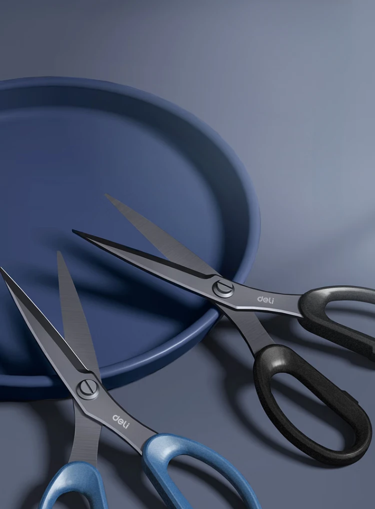 Tesoura multifuncional Deli de aço inoxidável com design moderno. Ideal para casa, escritório e cozinha.