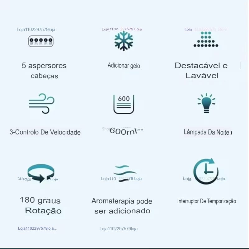 Personalize o fluxo de ar com 3 velocidades ajustáveis e escolha entre vários modos de pulverização. Perfeito para criar um ambiente relaxante, seja no escritório ou durante um acampamento.
